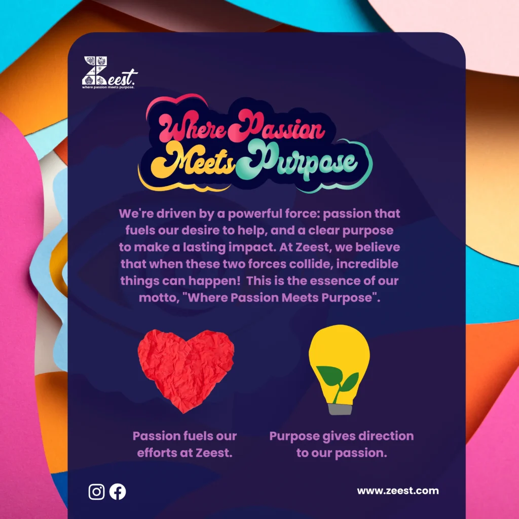 “Welcome to Zeest, where our commitment runs deep, and our goals are clear. We empower, support, and inspire individuals of all backgrounds, fostering a diverse and flourishing world. Join us on this journey! Together, let’s illuminate lives and create a brighter future for all.”